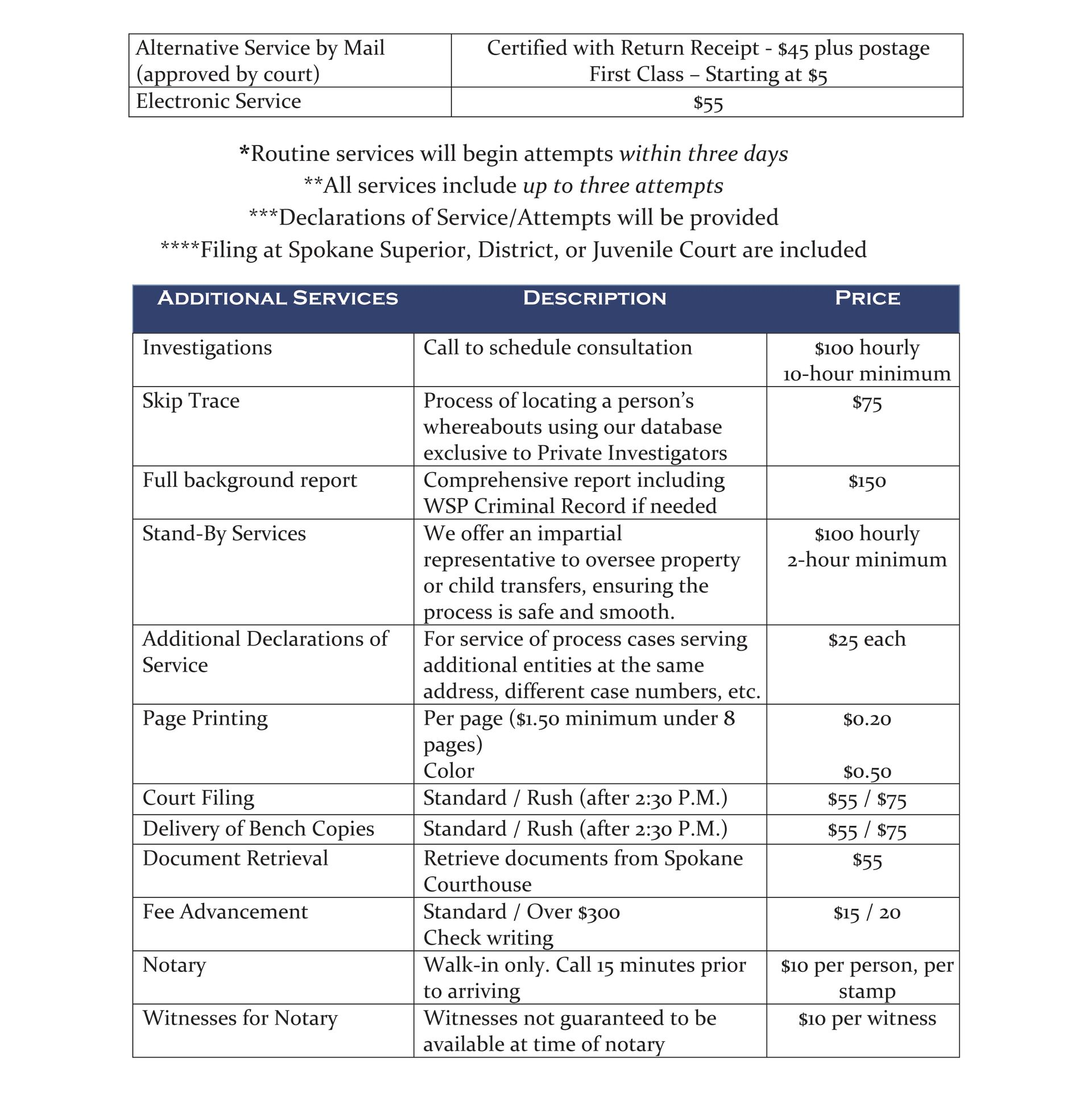 Conveniently located one block west of the Spokane County Courthouse. We are able to assist with routine scheduled filing and rush filing. We understand the importance to get the job done right the first time.